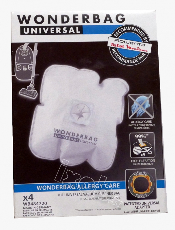 4 sacs wonderbag Allergy Care aspirateur MOULINEX ADJ258 - POWERPACK EFFIMAX - Haut pouvoir filtrant, 99% des microparticules (pollens, acariens,...) diminue le risque d'allergies.